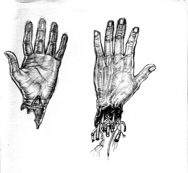 This is how it all begins. It all starts with an idea and then a series of sketches. From here it is developed into real world practical effects and props utilizing a range of creative processes. This process has taken almost as much time to create as the actual comic book.